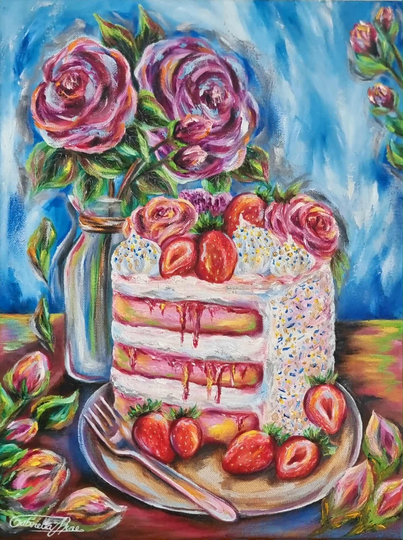 • Indlæs billede til gallerivisning Søde Desserter – "Sommerens lagkage"✨|40x30cm